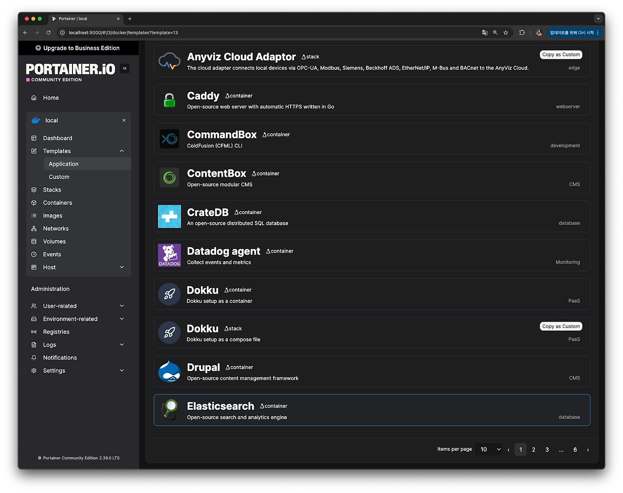 Template 기능을 활용해 Elasticsearch 설치와 같은 것들도 GUI환경에서 설치가 가능하고, 해당 Config에 대한 수정도 쉽습니다.